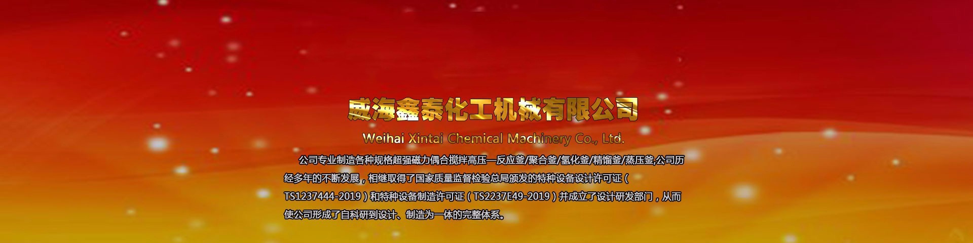 威海鑫泰化工機械有限公司位于山東威海,本公司專業(yè)制造銷售各種規(guī)格高壓反應(yīng)釜、磁力反應(yīng)釜、不銹鋼高壓釜、不銹鋼反應(yīng)釜、強磁力偶合攪拌反應(yīng)釜及與其配套的壓力罐、冷凝器、塔器等,其結(jié)構(gòu)形式、高中低壓、加熱方式、攪拌形式、轉(zhuǎn)速變化均可按標準或按用戶工藝要求進行選配定制,廠家直銷,產(chǎn)品價格低,型號全。
